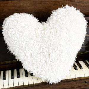 Beyaz Floş Peluş Kalp Yastık 45×45 cm