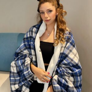 Liber Custom Design Mavi Giyilebilir Tek Kişilik Pelerin Battaniye